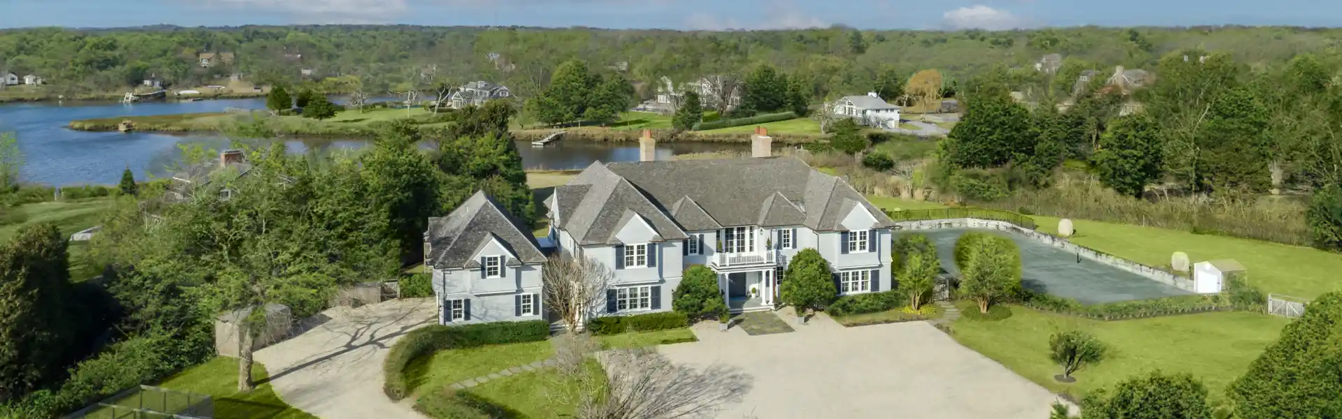 Arguably one of the best addresses in Southampton, this two story shingle-style country home is quietly available for sale to the discerning buyer. A complete interior renovation and refresh commenced immediately after purchase which brought this home to the standards of 2023 Luxury Living. Nearly 10,000 square feet and a gracious floor plan makes this home ideal for the Hamptons Lifestyle and four-season living. First floor rooms open to the terrace, lawn, tennis court and swimming pool with western views of Heady Creek in the distance. The sumptuous 1200 sq.ft.(+/-) second floor primary suite and 23 x 19 media room open to the upper deck with water views and big sky western sunset views. Additional notable features include a spectacular new kitchen and breakfast room, the reimagined great room, the covered outdoor dining “room” and the waterside pool with adjoining/adjacent lounge areas. Other features include a three-car garage, har-tru tennis court and enclosed garden. Sequestered behind security gates down a private lane, this home reflects quiet luxury and an ideal Hamptons lifestyle.