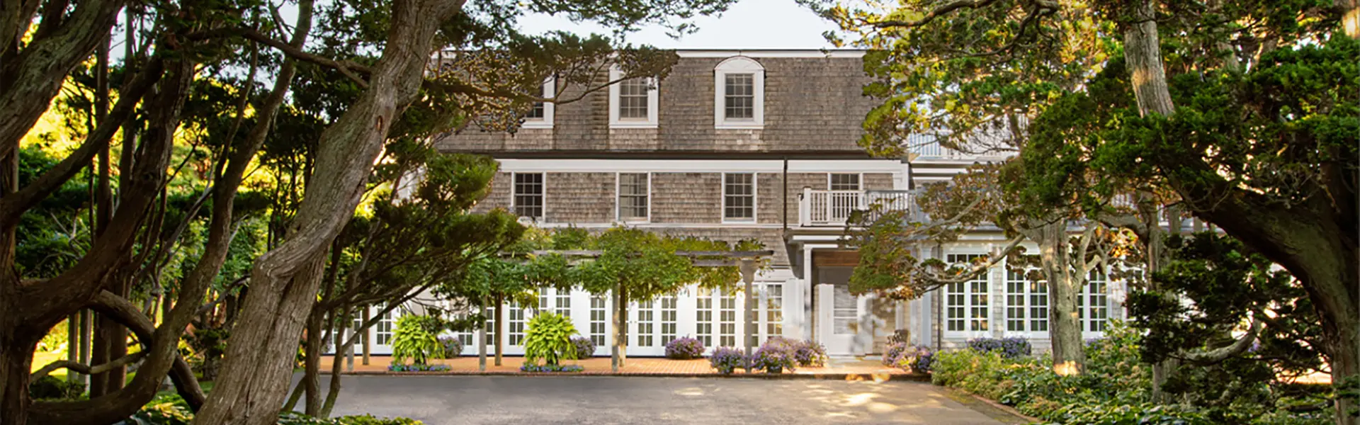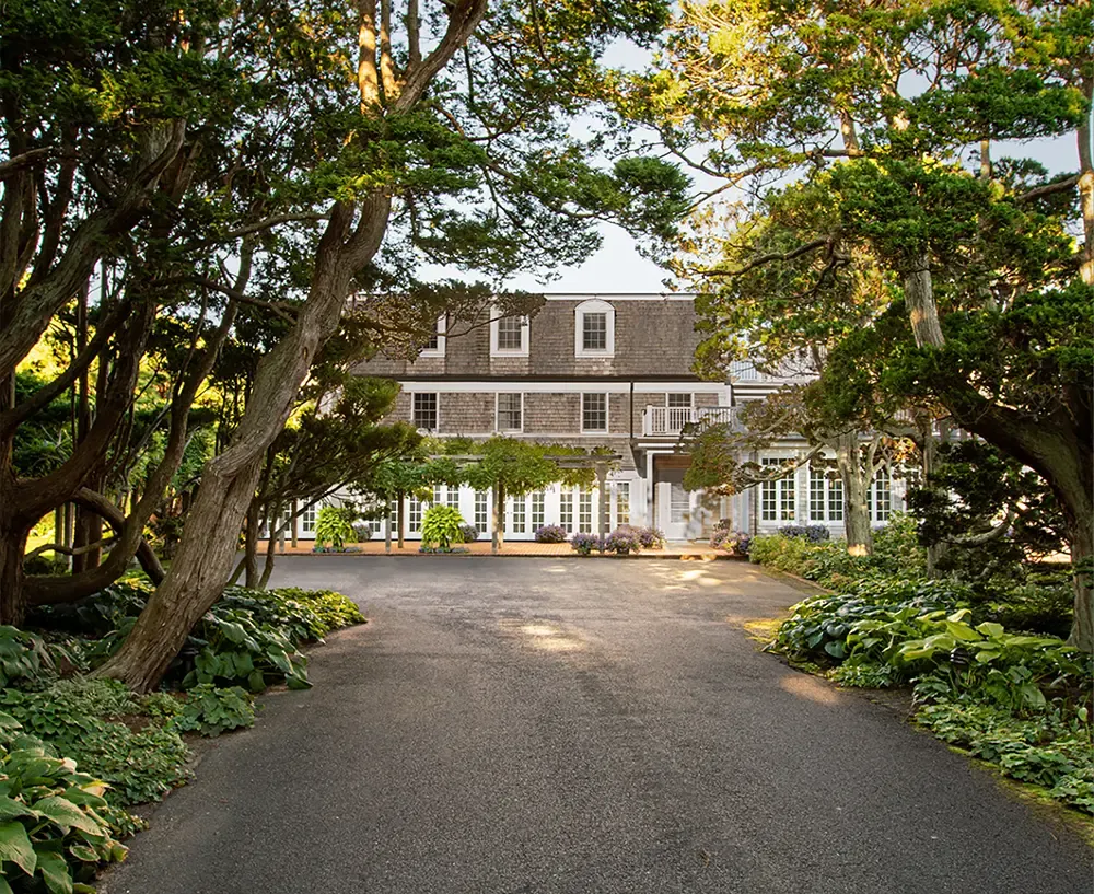 Every room seems to lean toward the landscape. Balconies and decks overlook gardens of mature cypress, umbrella pine, and cryptomeria, while the sound of the surf rises faintly in the distance. In spring, the air carries the fragrance of flowering perennials and salt, mingling with the earthy sweetness of the old trees that have watched over the property for more than a century. The gardens, framed by sculptural trunks and lush hosta beds, are a living artwork in themselves; a private sanctuary of green that unfurls to the edge of the dunes.