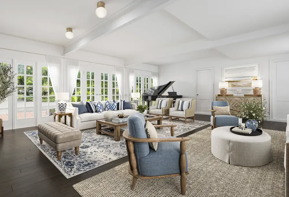In 1970, it caught the imagination of Roy Lichtenstein, one of the most influential American artists of the 20th century, who purchased the property and transformed it into his creative sanctuary. Lichtenstein brought a modern sensibility to the estate, reimagining its lines and expanding its structure. He added walls of glass that framed the gardens and terraces, opened the interiors to light, and built a separate studio beside a two-car garage, a space where creativity could live as freely as the sea air.