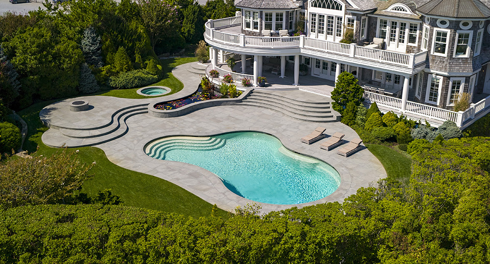 Outdoors, the landscape becomes a living extensionof the architecture. A shimmering pool stretches toward the dunes like a crystal ribbon, framed bygardens of hydrangea, ornamental grasses, seasonal perennials, and specimen trees that soften every edge. Hand-laid stone paths wind through the property, weaving between shaded nooks, open lawns, andunbroken ocean views. On quiet afternoons, thesound of waves drifts across the Epay wood terraces & cooled Bluestone patio, mingling with sea side breezes and the warm scent of sunlit cedar.